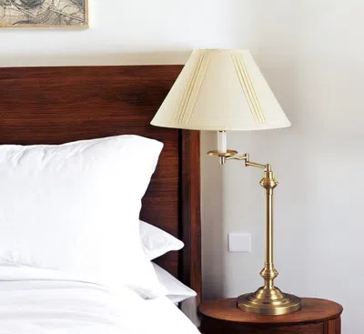 30" Bronze Metal Swing Arm Table Lamp With Off White Empire Shade In Multi