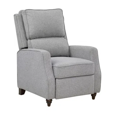 Isac 37 Inch Push Back Recliner Chair, Gray Polyester, Brown Solid Wood