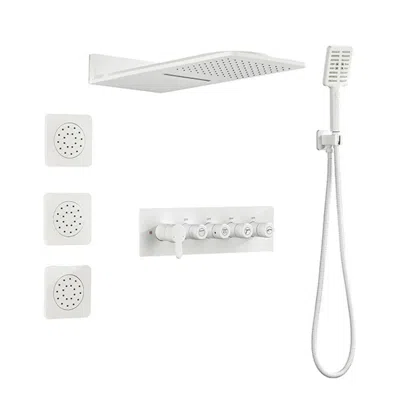 Wall Mounted Waterfall Rain Shower System With 3 Body Sprays & Handheld Shower - White
