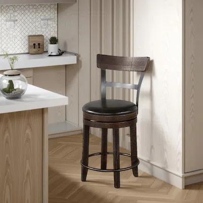 Flint Swivel Barstool Chair Set Of 2, Black Faux Leather, Dark Brown