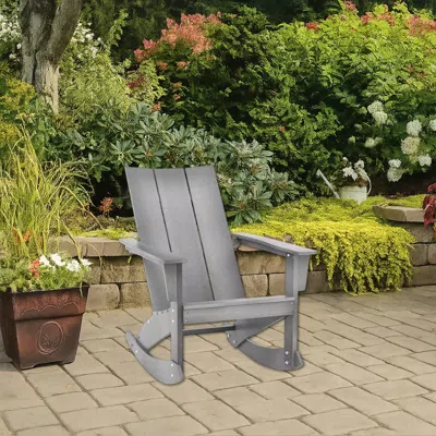 Rocking Adirondack Chair With Ergonomic Curved Back For Patio Or Balcony In Gray