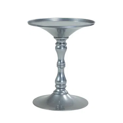 Wowi 23 Inch Side End Table, Round Hourglass Turned Base, Silver Finish In Blue