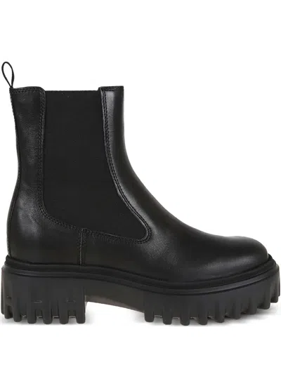 Hogan Hocket Medium Leather Hobo Bag In Black