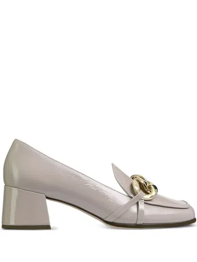 Mary Horsebit-embellished Block-heel Slingback Pumps In Neutral
