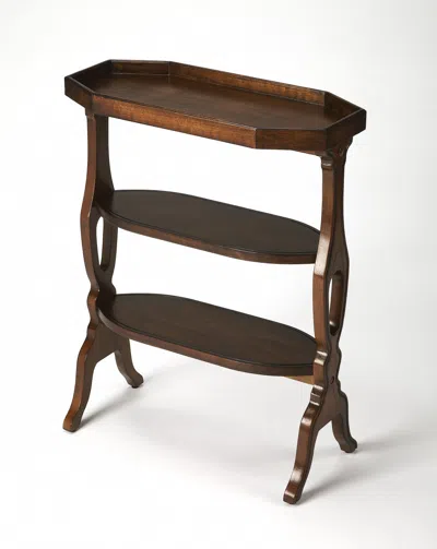 28" Dark Brown Manufactured Wood Octagon End Table With Two Shelves