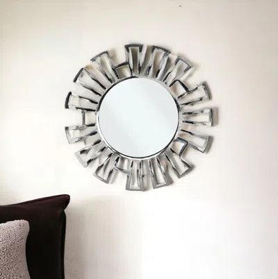 29" Gold Hexagonal Lines Steel Framed Accent Mirror In Burgundy