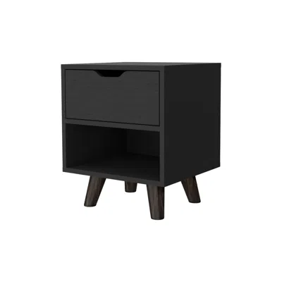 19" Black One Drawer Faux Wood Nightstand
