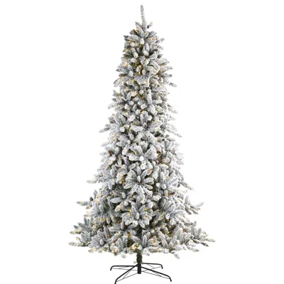 9' Flocked Livingston Fir Christmas Tree W650 Led And Cones In White