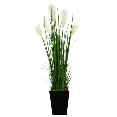 Wheat Plum Grass Artificial Plant In Black Metal Planter 4.5"