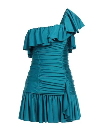 Woman Mini Dress Turquoise Size 8 Polyester, Polyurethane, Elastane In Blue