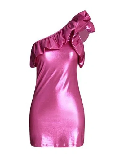 Woman Mini Dress Fuchsia Size 8 Polyester, Polyurethane, Elastane, Aluminum In Pink