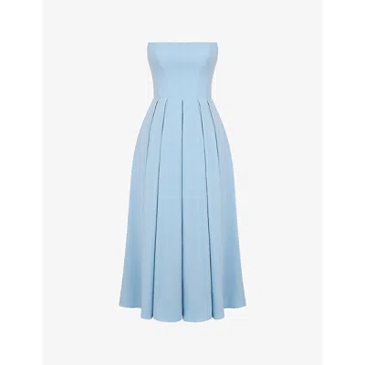 Womens Tuscan Blue Audrey Slim-fit Strapless Cotton-blend Midi Dress