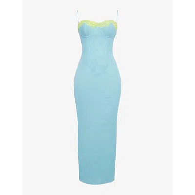 Womens Ice Blue Azzurra Floral-embroidered Woven Maxi Dress