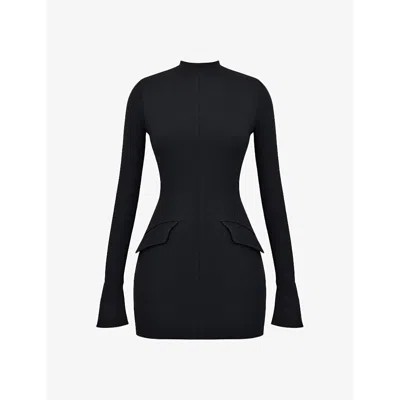 Womens Mahalia Fluted-cuffs Stretch-woven Mini Dress Black