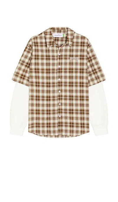 Double Layered Button Down Shirt In Brown