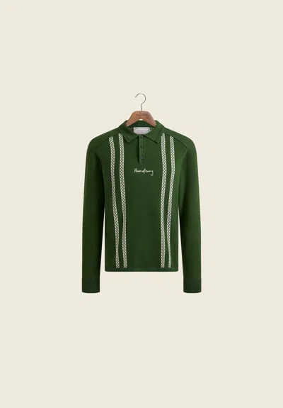 Knit Striped Long Sleeve Rugby Shirt In Green