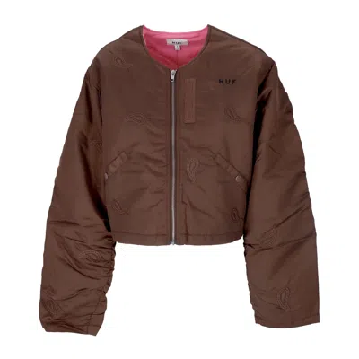 Short Women's Paisley Satin Bomber Brown Jacket
