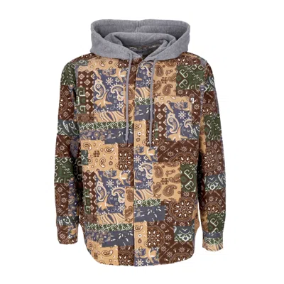 Women's Long Sleeve Hooded Shirt Patchwork Cord Hooded Jacket Brown