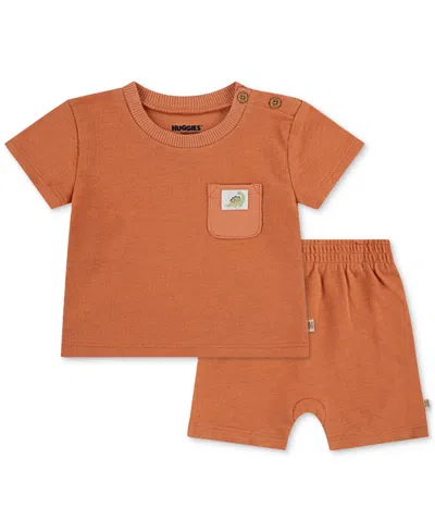 Baby Crepe Knit Jersey T-shirt & Shorts, 2 Piece Set In Tangerine
