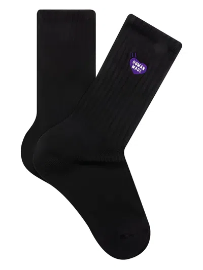 Heart-embroidered Pile Socks In Black