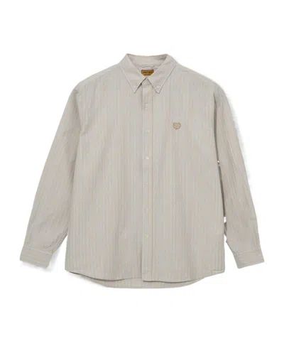 Relaxed Fit Long-sleeve Shirt With Classic Collar And Slogan Detail In Gray