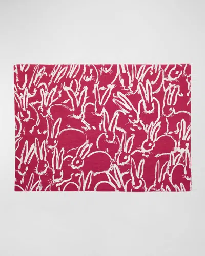 Band Of Bunnies Embroidered Linen Placemat In Pink