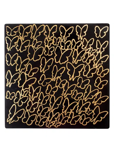 Midnight Butterflies Metallic-print Lacquer Square Placemat In Brown