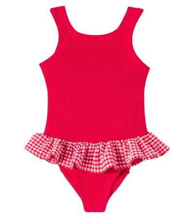 Kids' Denise Gingham Ruffled Swimsuit In Pink