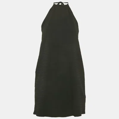 Pre-owned Black Seersucker Halterneck Mini Dress M