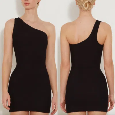 Pre-owned Hunza Black Nancy One Shoulder Crinkle Bodycon Mini Dress (o/s)