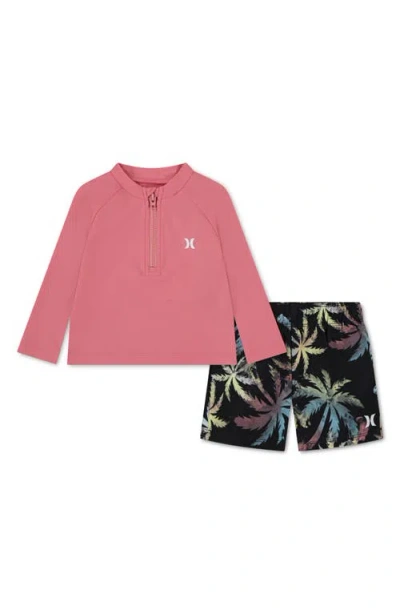 Babies' Toddler Boys Rash Guard Top & Swim Shorts, 2 Piece Set In Black