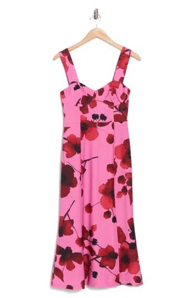 Romantic Sketched Floral Midi Dress In Pink