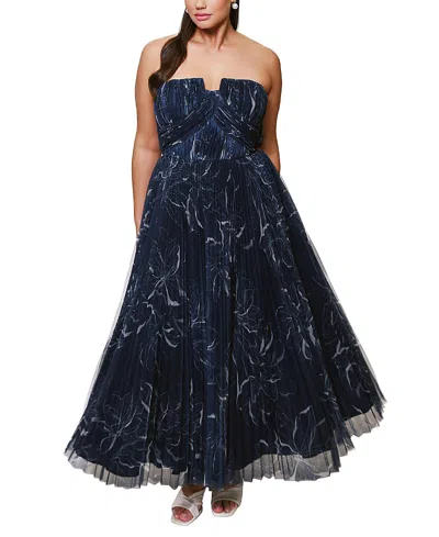 Plus Size Corene Floral Tulle Gown In Navy Floral