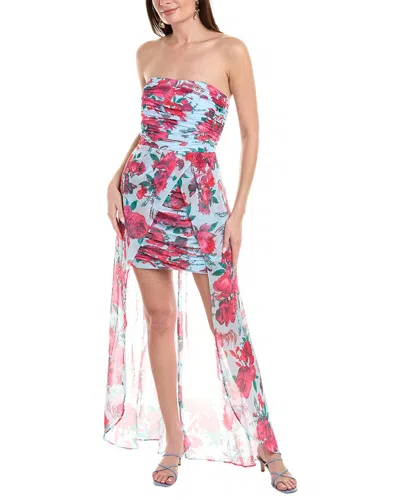 Strapless Belted Chiffon Floral Maxi Dress In Multi