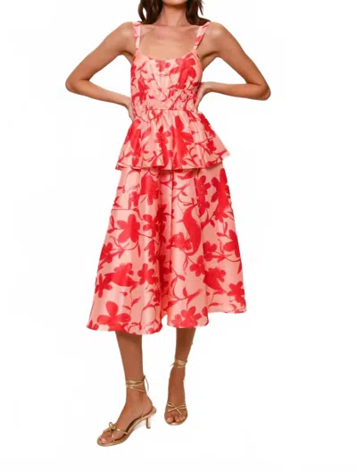 Indy Sleeveless Midi Dress In Teal Multi Overlay Hibiscus Floral In Orange