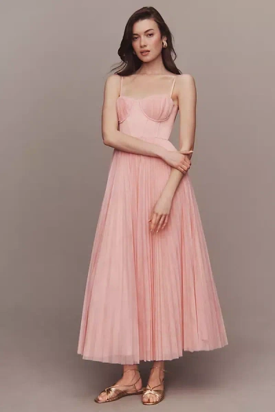 Amara Corset Pleated Tulle Fit & Flare Midi Dress In Pink