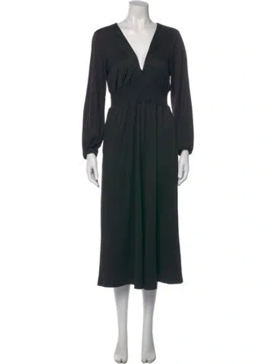 Pre-owned Square Neckline Midi Length Dress In Brown