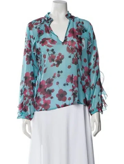 Pre-owned Floral Print V-neck Blouse In Blue