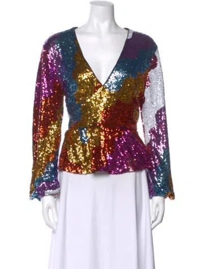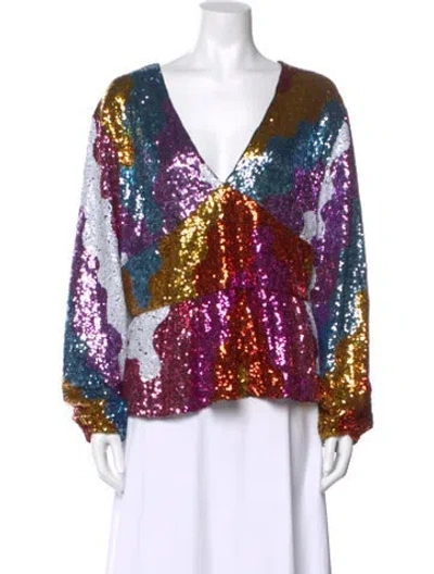 Pre-owned Patterned V-neck Top In Blue