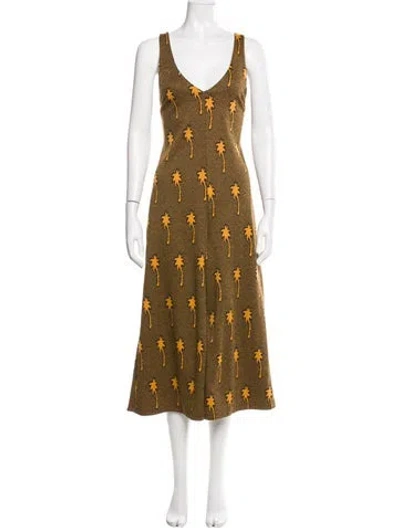 Pre-owned Printed V-neck Jumpsuit In Brown