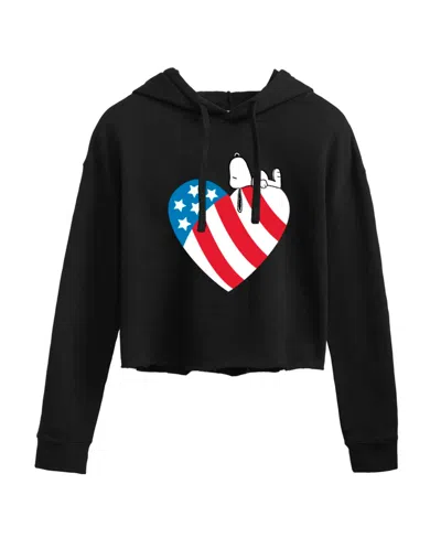 Trendy Juniors Peanuts Snoopy Flag Graphic Cropped Hoodie In Black