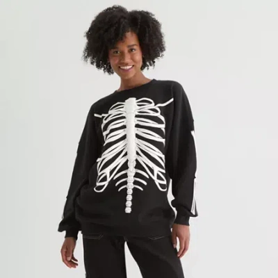 Skeleton Womens Juniors Crew Neck Long Sleeve Sweatshirt In Black
