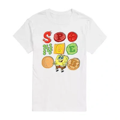 Mens Crew Neck Short Sleeve Classic Fit Spongebob Graphic T-shirt In White