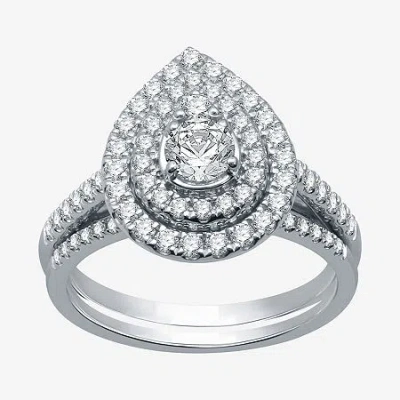 (h-i / I1) Womens 1 Ct. T.w. Lab Grown White Diamond Sterling Silver Pear Bridal Set