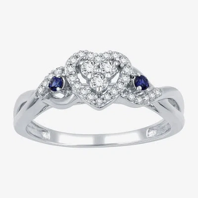 (h-i / I1) Womens 1/5 Ct. Lab Grown White Diamond Sterling Silver Heart Side Stone Engagement Ring