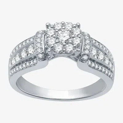 (h-i/i1) Womens 1 Ct. T.w. Lab Grown White Diamond Sterling Silver Side Stone Engagement Ring In Metallic