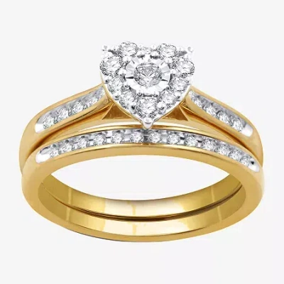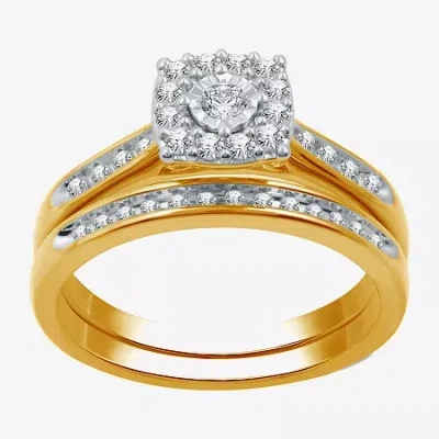 (h-i / I1) Womens 1/4 Ct. T.w. Lab Grown White Diamond Sterling Silver Round Solitaire Bridal Set In Gold