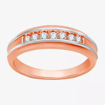 (h-i / I1) Mens 1/4 Ct. T.w. Lab Grown White Diamond 14k Two Tone Gold Over Silver Wedding Band In Pink