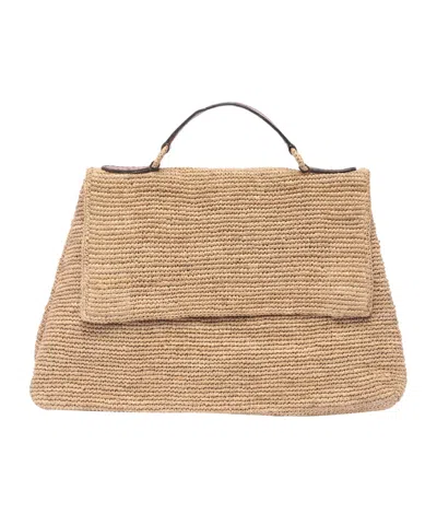 Coral Raffia Handbag In Brown