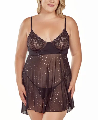 Plus Size Glitter And Lace Lingerie Set, 2-piece Set In Black